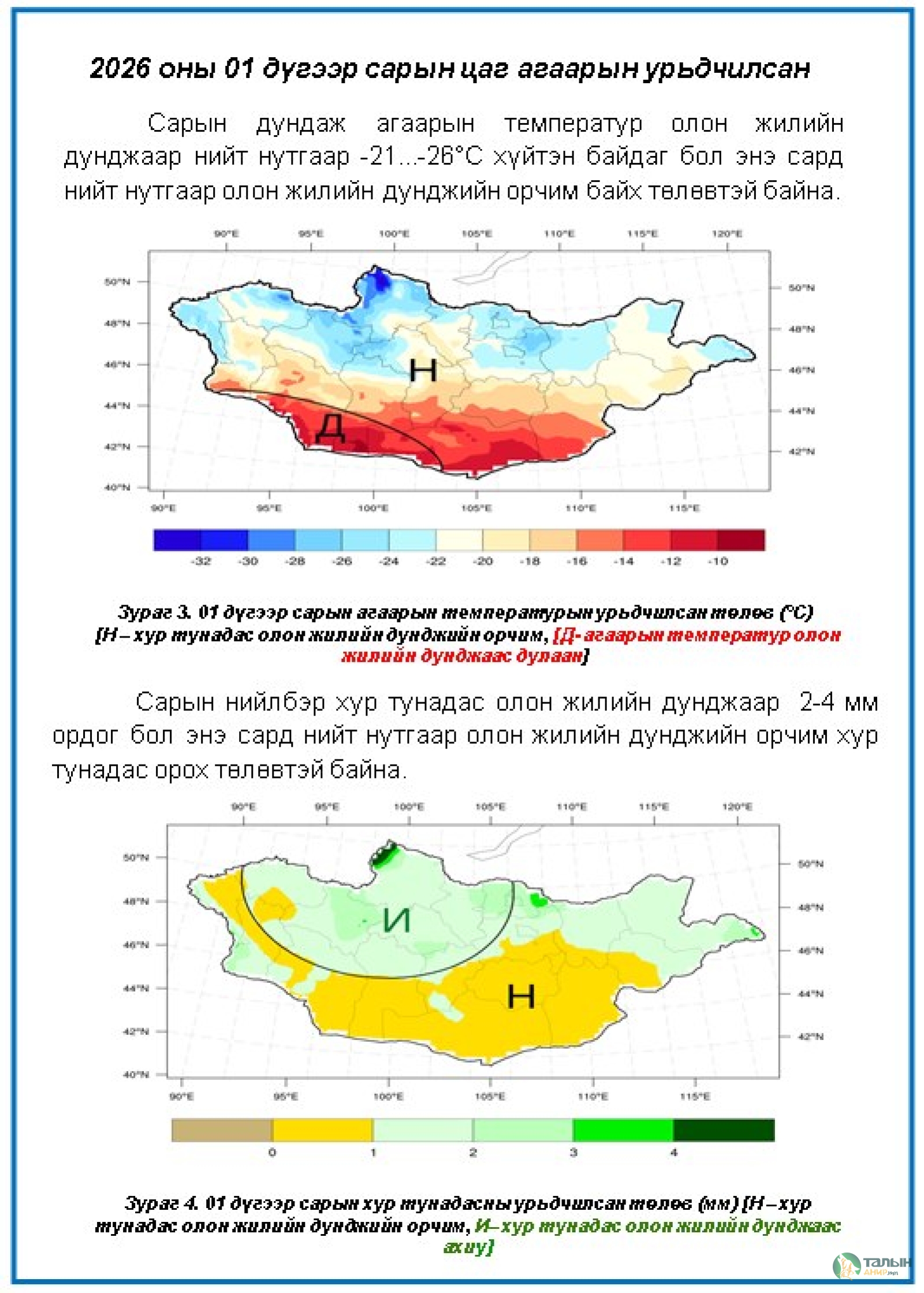 2025 оны 12 дугаар сар болон 2026 оны 01, 02 дугаар саруудын цаг агаарын урьдчил...