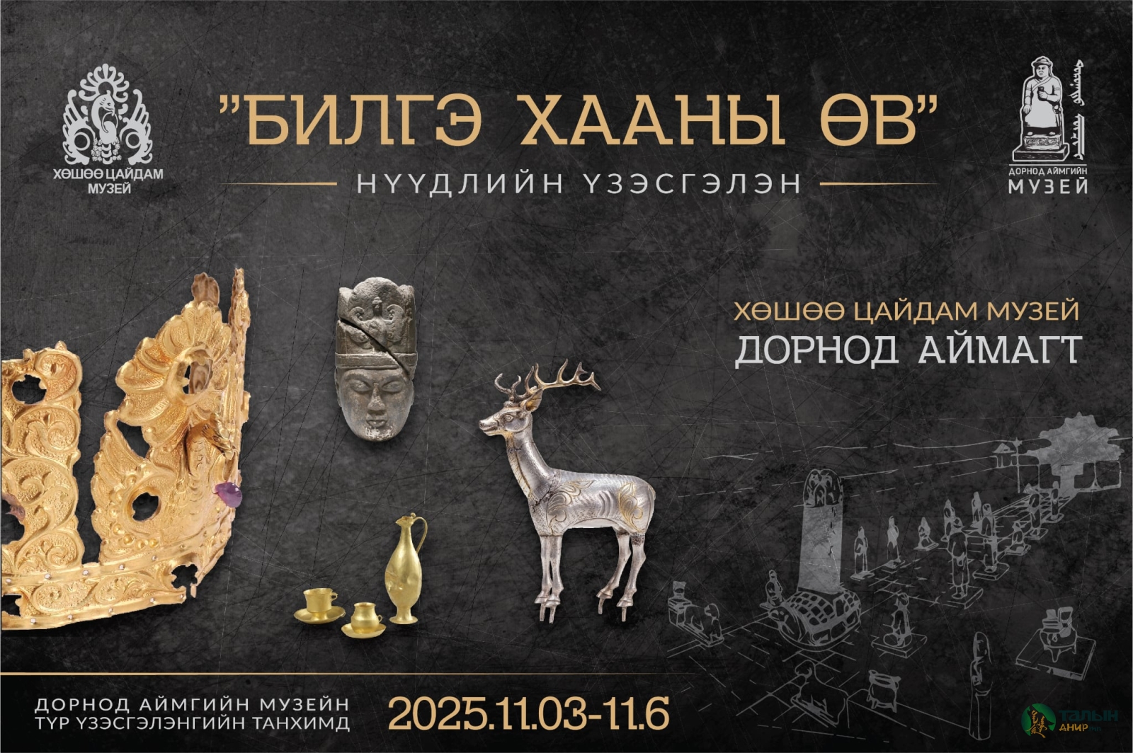 “Соёлын орон зай—Бидний орчин” бүтээлч аяны хүрээнд Хөшөө цайдам музей, Дорнод аймгийн музейн хамтын ажиллагааны хүрээнд Монгол нутагт оршин тогтнож байсан эртний улсуудын нэг Түрэгийн хаант улсын түүх соёлын хосгүй үнэт дурсгалуудаас бүрдсэн “Билгэ хааны өв” нүүдлийн үзэсгэлэнг Дорнод аймагт 11 дүгээр сарын 03-06-ны өдөр дэлгэх юм.