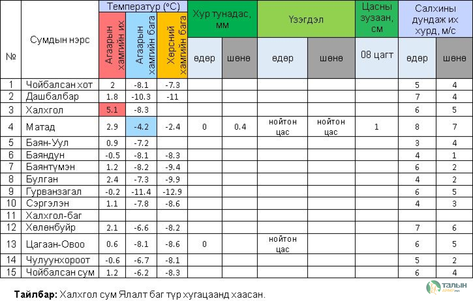 Дорнод аймгийн нутгаар цаг агаар ямар байсан тухай өнгөрсөн хоногийн тойм.